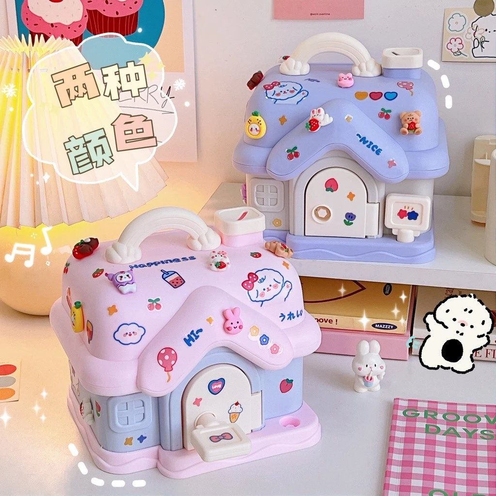 Heo Đất Tiết Kiệm Tặng Gói Sticker 3D Hình Ngôi Nhà Dễ Thương Cho Bé