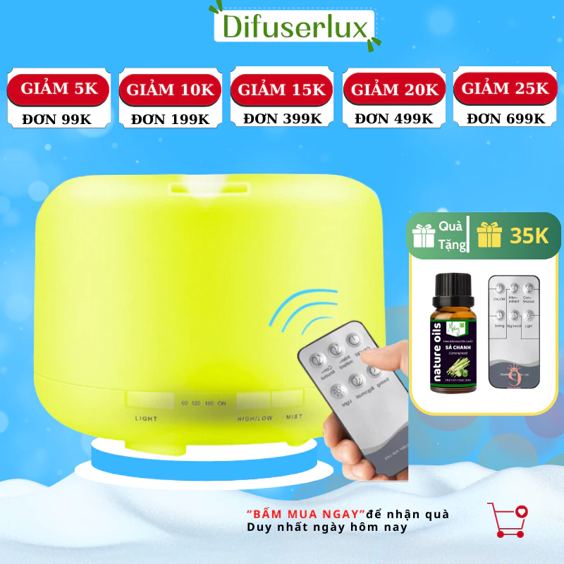 🔥 Máy phun sương tạo ẩm, khuếch tán tinh dầu có điều khiển đèn led 7 màu BH 12 tháng – DIFFUSERLUX đang giảm giá!