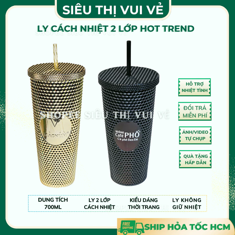 🔥 Ly kim cương 2 lớp có ống hút dung tích 700ml (hàng khuyến mãi Cafe Phố ) đang giảm giá!